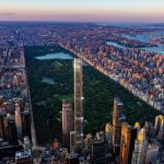 Extell Development developed this impressive 131-floor skyscraper at 217 West 57th Street in Central Park South. Adrian Smith + Gordon Gill Architecture designed this project. The building includes only 179 extreme luxury apartments and provides many amenities, including a swimming pool and a rooftop.