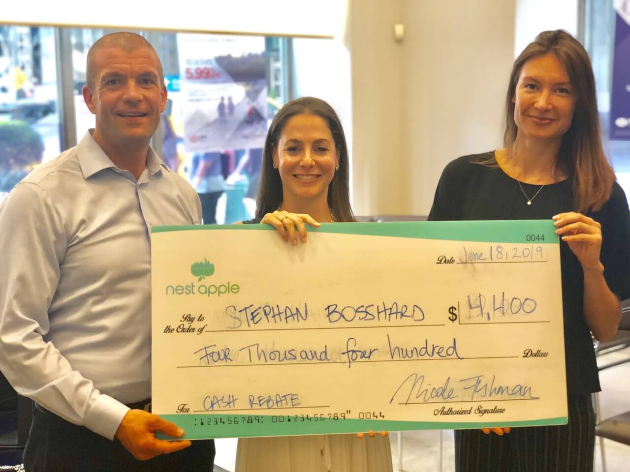 A+ experience. I bought my apartment with Nicole and George. They were excellent to work with. They helped me through the whole process from getting a mortgage, selecting a lawyer, putting together my board package, closing on the apartment and referring contractors. The icing on the cake was the rebate. After getting cash back, now I have funds to renovate my new place. I highly recommend NestApple!